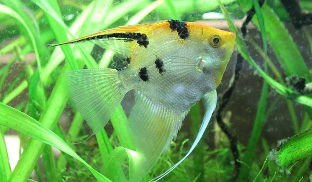 Эти красивые рыбки имеют оригинальную форму и окраску. У них широкие плавники, выступающие в разные стороны, поэтому скалярий стоит содержать в высоких и просторных аквариумах. Они хорошо чувствуют себя при температуре 24 °С (5). В остальных аспектах они неприхотливы.