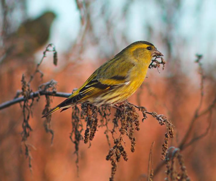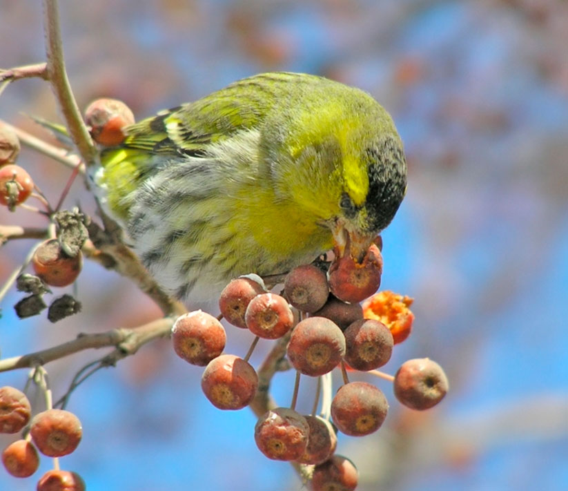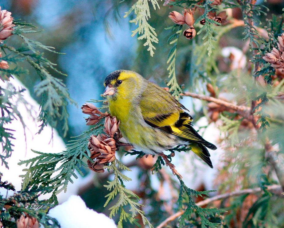 Эти пернатые с удовольствием едят семена березы, ольхи и тополя. Для поиска пищи они используют свой тонкий клюв и крючковатые коготки. Чижи также питаются семенами хвойных деревьев.