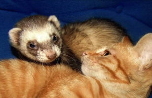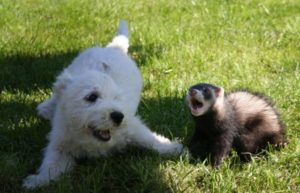 С кошками и собаками хорьки легко находят общий язык, также как и со своими соплеменниками, но вот с грызунами и птицами им это почти не удается.