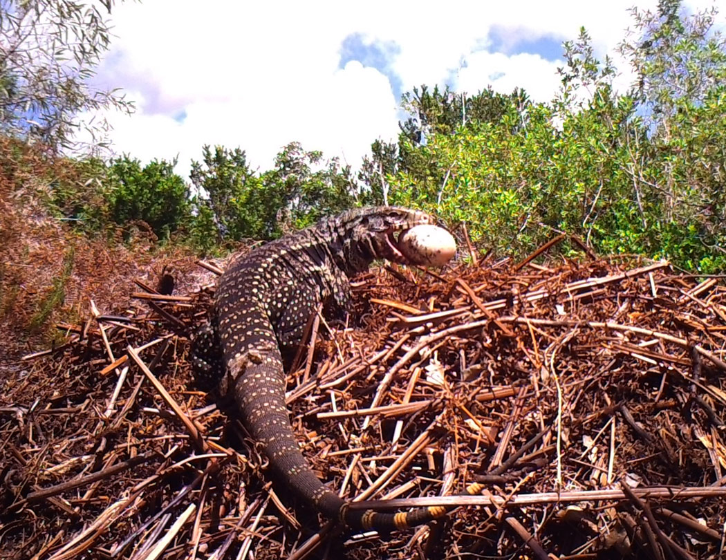 После откладки яиц самка пытается замаскировать их с помощью растительности и листьев. Через три месяца из яиц начинают доноситься слабые звуки. Услышав их, самка спешит на помощь своим детенышам, помогая им выбраться из скорлупы. На протяжении всего периода развития эмбрионов самка остается рядом с гнездом, охраняя кладку.