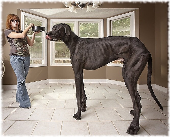 Высоту в холке 111,8 см показал немецкий дог по имени Зевс, который ушел к собачьим праотцам в 2014 году.