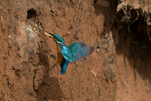 Рытье норы требует сосредоточенных усилий и отнимает много сил. Но чета зимородков работает с огромным энтузиазмом, причем супруги не только не уклоняются от работы, но стремятся внести как можно больший вклад в строительство и с нетерпением ждут своей очереди.