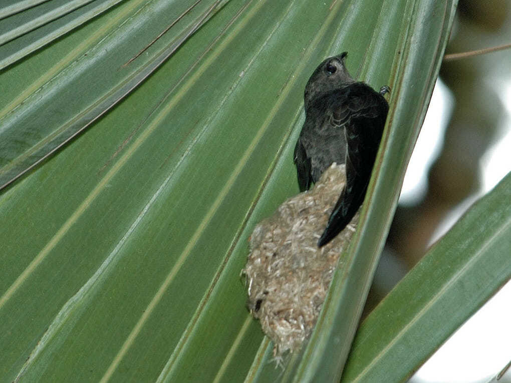 Гнездо пальмового стрижа защищает от тропических ливней лист пальмы. Хохлатые стрижи в вопросах защиты своих гнезд от дождей полагаются исключительно на себя. По сравнению с собственными размерами, они строят самые миниатюрные гнезда среди всех птиц.