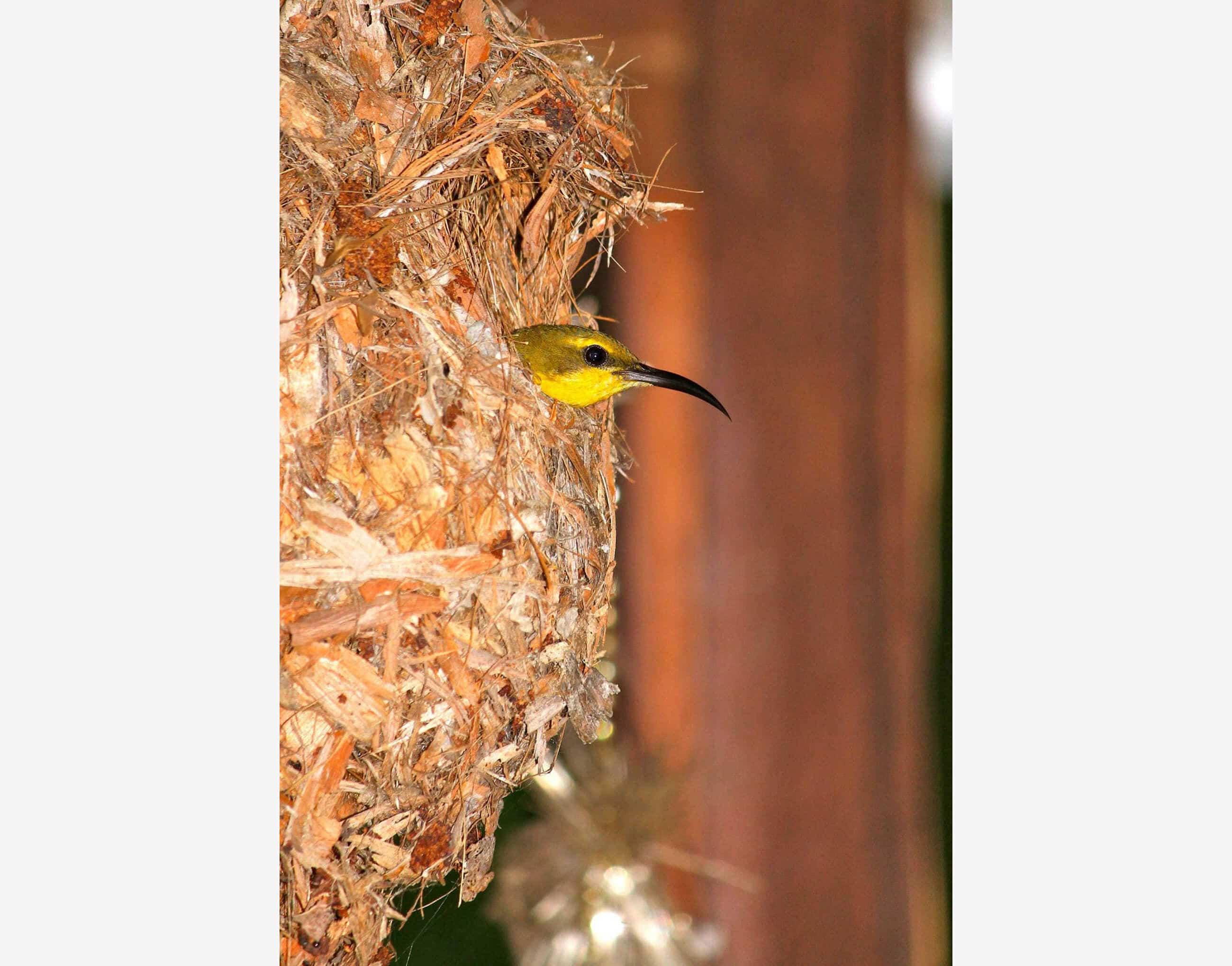 Уже на исходе первого дня стройки гнездо приобретает форму миниатюрной и аккуратной корзиночки с ручкой — более толстой и широкой у основания. В дальнейшем боковые края корзиночки становятся всё выше, отверстия уменьшаются и, наконец, свод крыши смыкается. Теперь остаётся лишь пристроить входной вестибюль в виде трубки, и гнездо готово. Отметим, что точно такая же последовательность действий, включая совпадение в мельчайших деталях, присуща уже упомянутым ткачам, также строящим висячие гнезда, но использующим другие материалы и другую технологию их крепления.