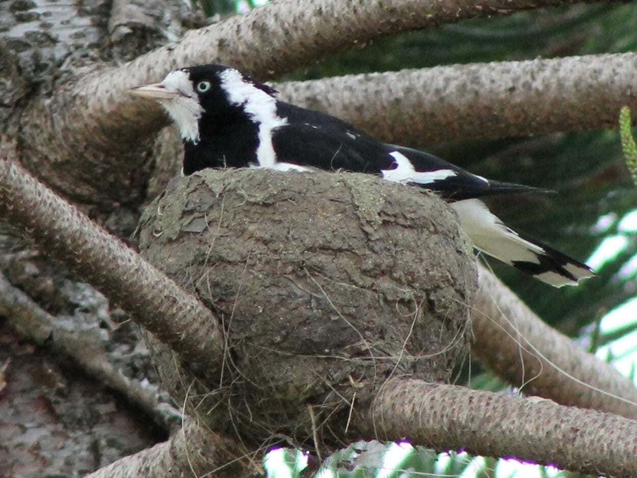 Сорочьи жаворонки — небольшие ярко окрашенные птицы, обитающие в засушливых районах Австралии. Несмотря на название, с эволюционной точки зрения они ближе к вороновым и действительно напоминают сорок с укороченными хвостами. Их вполне устраивают самые простые открытые сверху чашевидные гнезда, укрепленные на ветвях деревьев, которые типичны для большинства вороновых. Отличие заключается в том, что гнездо жаворонков полностью слеплено из глины. Это дает лишь одно преимущество — возможность строиться на тонких горизонтальных ветвях, «прилепляя» к ним конструкцию, тогда как для гнезд из «стандартного» материала, не обладающего цементирующими свойствами, необходимо искать развилку ветвей или укреплять их поблизости от ствола, по которому может взобраться сумчатая куница или змея.