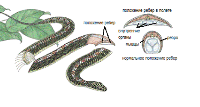 Планируя в воздухе, змеи способны преодолевать расстояние до 100 метров.
