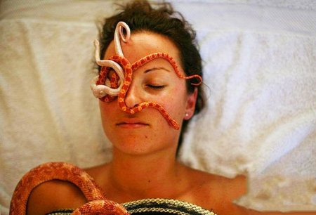 Одно только название спа-центра «Ферма хищных растений» вызывает вопросы о том, стоит ли входить внутрь, но ваше удивление возрастет, когда вы узнаете, что основной обслуживающий персонал здесь – это змеи. Но не стоит переживать, все змеи, которые делают массаж, абсолютно безопасны. Королевские змеи и молочные удавы, используемые в спа-салоне, совершенно не ядовиты.