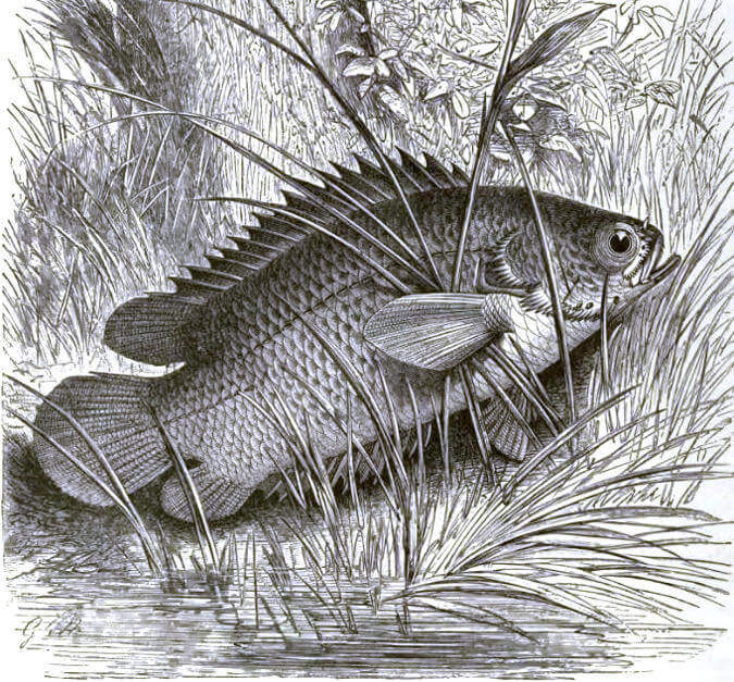 Окунь перемещается, используя прочные плавники на груди и колючки на жабрах. Как же дышит эта рыба? Воздух попадает в пространства возле жабр и затем поступает в кровь.
