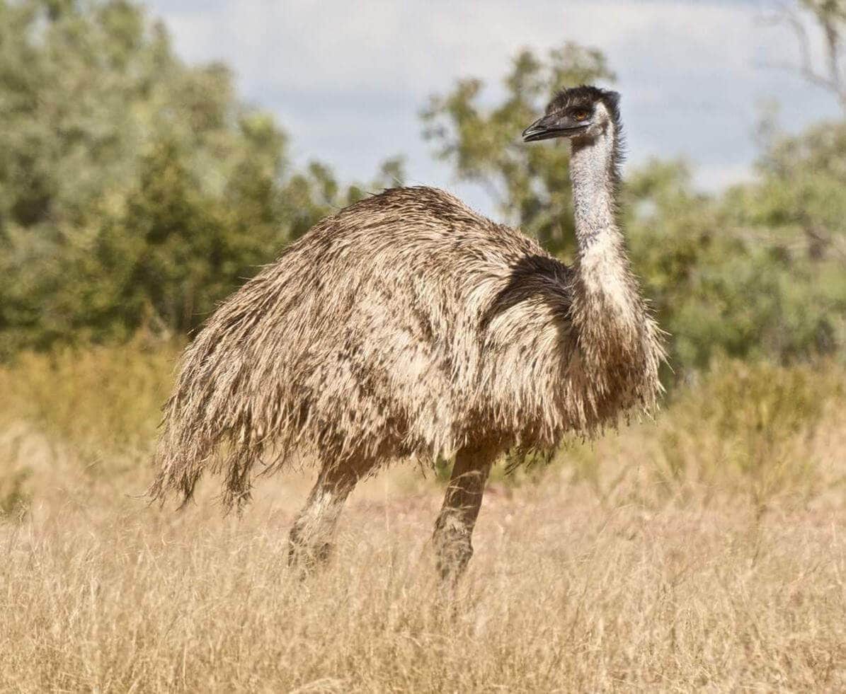 Эму занимает третье место в списке самых больших птиц на планете. Эта птица обитает в Австралии и ведет кочевой образ жизни. Рост крупных особей достигает 1 м 90 см, а вес – 55 кг. Эму имеют длинные и мощные ноги, каждая нога оснащена своеобразной «подушкой» и тремя пальцами с когтями, что позволяет им бегать со скоростью 50 км/ч, преодолевать большие расстояния и защищаться от врагов. Однако крылья у эму совсем небольшие – около 20 см в длину с маленьким когтем на конце. Небольшая голова расположена на длинной светло-голубой шее с редким оперением, а туловище покрыто длинными перьями, напоминающими шерсть.
