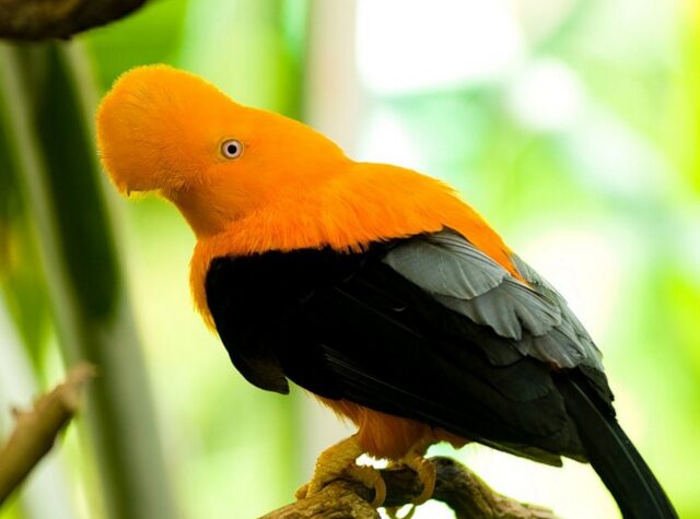 Эта интересная птица является достаточно редким экземпляром, а ее ключевая особенность, как говорится, налицо. Называется она чудо — скальный петушок. Клюв у нее действительно имеется, однако он тщательно скрыт под яркими перышками. Вводит в заблуждение не только необычный внешний вид, но и само название. С петушками или курочками эта птица не имеет ничего общего, она принадлежит к отряду воробьиных.
