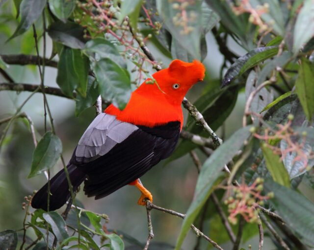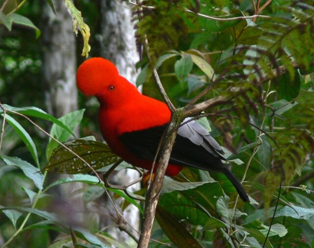 У андского (перуанского) скального петушка оперение ярко-желтого или насыщенно-красного цвета, хвост и крылья черные, а крылья серебристо-серые.