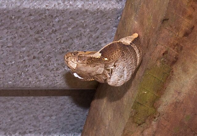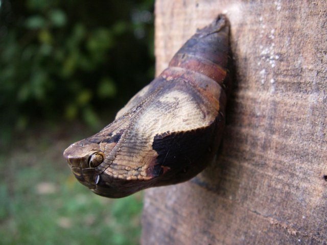 Гусеница бабочки-совы создаёт кокон, который напоминает змею как по цвету, так и по форме.
